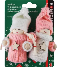 Набор украшений Homeclub Малыши со звездочкой 8см, в свитере и шапке, красный/белый, 2шт