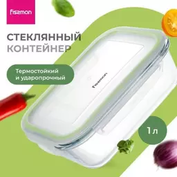 Контейнер для продуктов Fissman стеклянный герметичный, 21x15x7см/1.04 л
