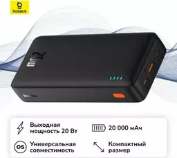 Внешний аккумулятор Baseus Airpow Fast Charge 20000 мач Cluster Black