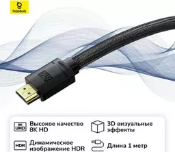 Кабель цифровой аудио-видео Baseus Hdmi 2.1 1м (Cakgq-j01) Black