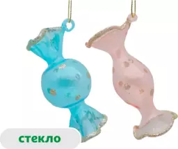 Елочное украшение Розовый зефир Подвеска Конфета стекло 8.9 см, 1 шт в ассортименте