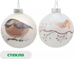 Елочный шар Снежная королева Птицы стекло 8 см, 1 шт в ассортименте