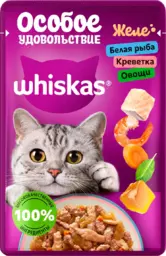 Влажный корм для кошек Whiskas Особое удовольствие белая рыба креветки и овощи в желе, 75 г