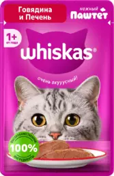 Влажный корм для кошек Whiskas паштет говядина печень, 75 г