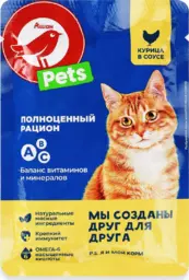 Влажный корм для кошек Ашан Красная птица курица в соусе, 75 г