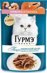 Корм влажный для кошек Гурмэ Перл Морской Дуэт с креветкой и лососем, 75 г