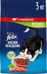 Сухой корм для взрослых кошек Felix Мясное Объедение с говядиной, 3 кг