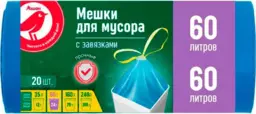 Мешки для мусора Ашан Красная птица с завязками ушки 60 л, 20 шт