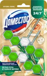 Арома-блок для очищения унитаза Доместос Power 5 Aroma Lux Свежесть зеленого чая блокировка неприятного запаха, 2х50 г