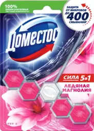 Блок для унитаза Доместос Сила 5в1 Ледяная магнолия защита от микробов и налета, 55 г