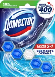 Блок для унитаза Доместос Сила 5в1 Свежесть океана защита от микробов и налета, 55 г