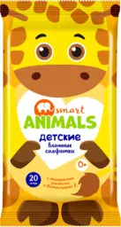Салфетки влажные Smart Animals с экстрактом ромашкой и витамином Е, 20 шт