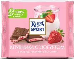 Шоколад Ritter Sport молочный клубника с йогуртом Германия, 100 г