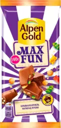 Шоколад молочный Alpen Gold Maxfun со взрывной карамелью, мармеладом и печеньем, 140 г