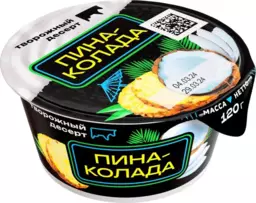 Десерт творожный Пина-колада кокос ананас в сливках 6%, 120 г