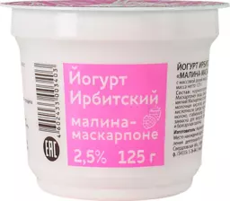 Йогурт Ирбитский с наполнителем малина-маскарпоне 2.5% Бзмж, 125 г