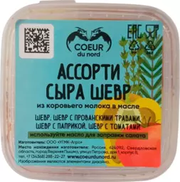 Сыр мягкий Шевр Coeur du nord ассорти в обсыпке шарики в масле набор 45% Бзмж, 250 г