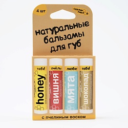 Сделанопчелой Набор бальзамов для губ Мед, Вишня, Мята, Шоколад