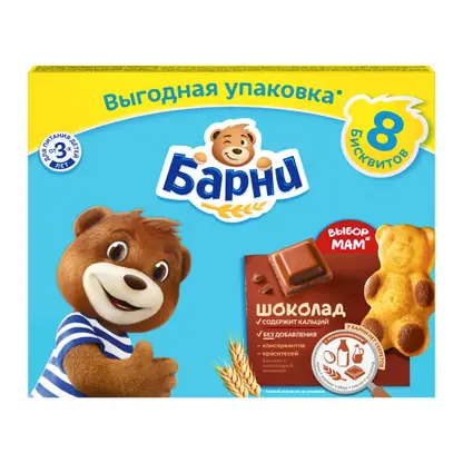 Пирожное бисквитное с шоколадной начинкой Барни Медвежонок 240г