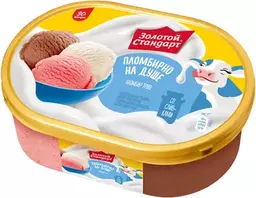 Мороженое Золотой Стандарт Трио пломбир шоколад-вкус сливок-вкус клубники 475г
