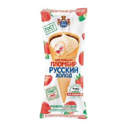 Мороженое Настоящий Пломбир рожок с клубничным джемом 120г