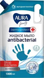 Аура жидкое мыло Дерма-протект Семейное с антибактериальным эффектом Олива и сок Алоэ 1000 мл (дой-пак)