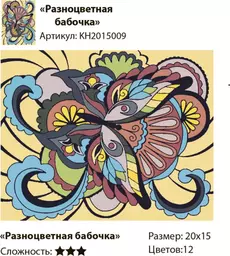 Картина для раскрашивания по номерам 20*16 Разноцветная Бабочка (Кн2015009)
