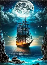 Картина для раскрашивания по номерам 40*50 Корабль в Лунном Свете со светящейся краской(fhr0576)