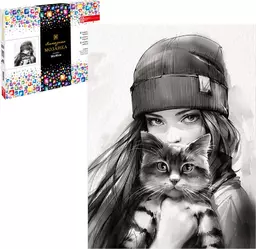 Мозаика алмазная Девушка с котом 30*40 см (70850)