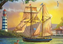 Мозаика алмазная полная выкладка с подрамником 17*22 см Парусник на Закате в Море (Ac17091)