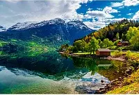 Мозаика алмазная с подрамником полная выкладка 30*40 см Норвежское Озеро Рыжий кот (Нд-0396)