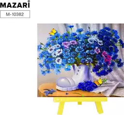 Мозаика алмазная частичная выкладка с мольбертом 21*25 см Букет Васильков (M-10382)