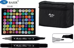 Маркер для скетчинга 2-х сторонний набор 80 цвета(ов) Басир пулевидный /скошенный в текстильной сумке (155-80)