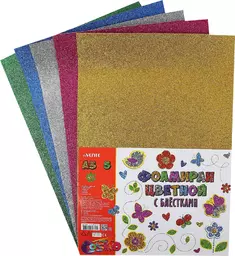 Фоамиран для творчества с блестками А3 5 л. 5 цв. Девенте 2 мм (8013803)