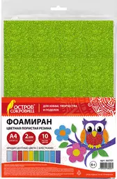 Фоамиран для творчества с блестками А4 10 л. 10 цв. Остров Сокровищ яркие цвета 2 мм (665101)