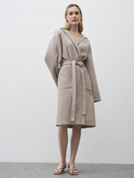 Женский вафельный халат Maison David (хлопок), пыльно-бежевый