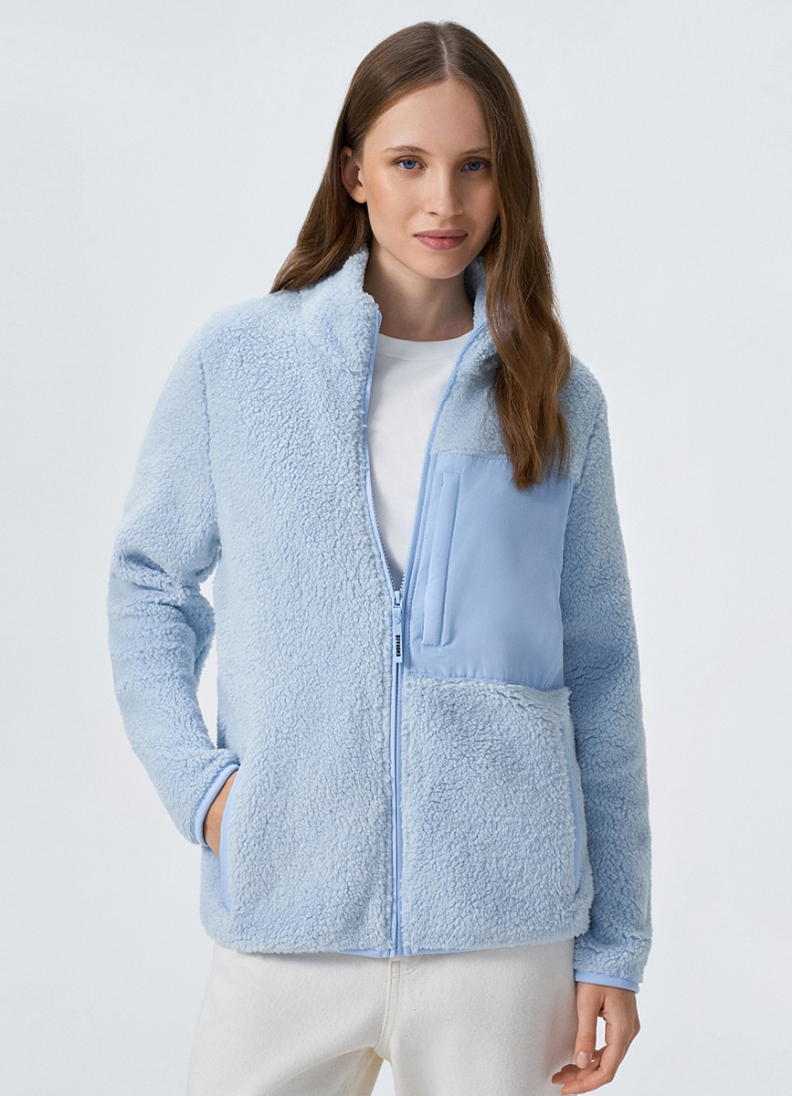 Куртка меховая на молнии голубая 34358030299