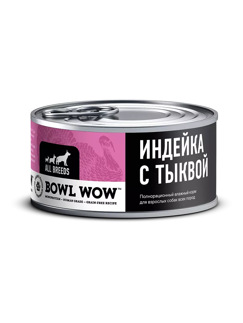 Влажный корм для собак Bowl Wow Monoprotein с индейкой и тыквой 100 г