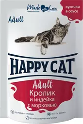 Влажный корм Happy Cat Кролик и индейка с морковью кусочки в соусе для кошек, 85г