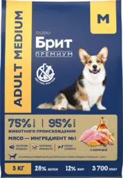 Сухой корм для взрослых собак средних пород Брит Премиум Adult M с курицей, 3 кг