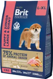 Сухой корм для щенков и молодых собак Brit Premium Junior L курица, 3 кг