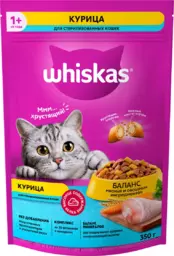 Сухой корм для стерилизованных кошек Whiskasс курицей и вкусными подушечками, 350 г