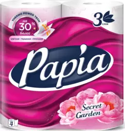 Туалетная бумага Papia Secret Garden 3 слоя, 4 рулона