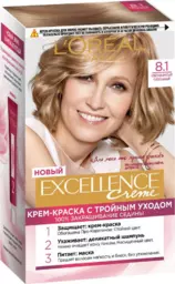 Крем-краска для волос L'oreal Paris Excellence светло-русый пепельный тон 8.1, 192 мл