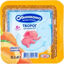 Творог детский Обнимама Абрикос-морковь 4.2% Бзмж, 100 г