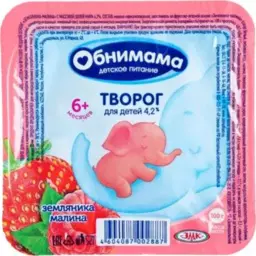 Творог детский Обнимама Малина-земляника 4.2% Бзмж, 100 г