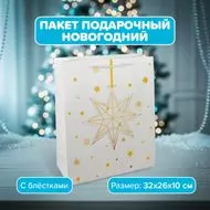 Пакет подарочный новогодний, Снежное кружево, 32х26х10 см, в ассортименте