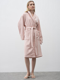 Женский махровый халат Maison David (хлопок), светло-розовый