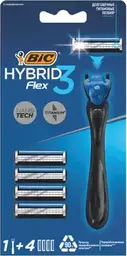 Бритва мужская Bic Hybrid 3 Flex 3 лезвия плавающая головка 1 ручка и 4 сменные кассеты