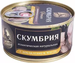 Скумбрия За родину Атлантическая натуральная с маслом 185г